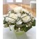 Circled with love and loops of grass, these white Roses, Carnations and Wax flowers look serene.