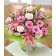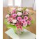 A show-off aqua pack hand-tied of pink Lilies, pale pink Roses and Germini.