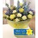 Blue and yellow are the Marie Curie brand colours. This stunning hand-tied bouquet features yellow Roses which symbolize care and friendship. A donation is made to Marie Curie with every order.
