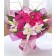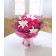 Rose, Lily and Germini hand-tied featuring hot cerise Roses and mini Gerbera.