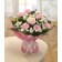 Pink and cream Roses, Gerbera and Freesias are the stars of this scented hand-tied bouquet, delivered in an aqua pack