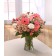 Peach Gerbera stand out in this bouquet closely followed by Roses and all backed up by Carnations and muted Chrysanthemums.