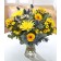 Yellow Chrysanthemums fight for the lead with Germini and scented Freesia. The bold blue Eryngium contrasts beautifully with the yellow flowers in this bouquet.