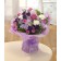 A stunning selection of pink and purple Roses, Freesias, Lisianthus and Carnations beautifully delivered as an aqua pack hand-tied bouquet.