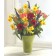 A fantastically bright and simply stunning spring flower bouquet. Rich red Anemone have been perfectly married with sunshine yellow Paperwhite Narcissi and striking purple Veronica. Orange Tulips and Carnations complete the arrangement.