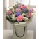 A fantastically fragrant aqua pack gift bag bouquet in delicate springtime pastel shades. Pink Hyacinth, Carnations and Ranunculus are married with white Alstromeria, Ageratum, Anemone and Tulips. Lavender Freesias complete the arrangement.